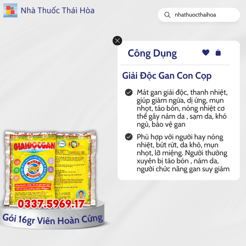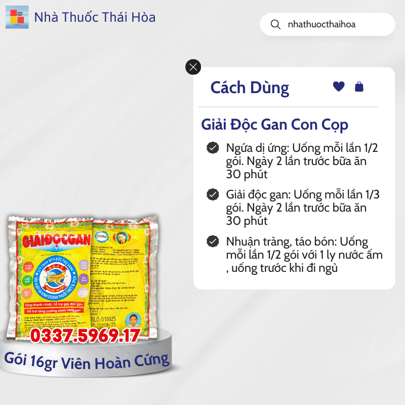 Giải độc gan: Uống mỗi lần 1/3 gói. Ngày 2 lần trước bữa ăn 30 phút