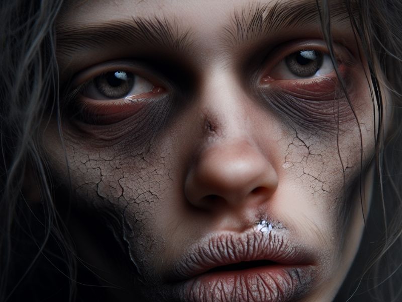 7. Môi nứt nẻ, thâm sạm, mắt trũng sâu, quầng thâm, tóc khô xơ, dễ gãy rụng: Mất nước cũng ảnh hưởng đến vẻ đẹp của bạn. Môi nứt nẻ, thâm sạm, mắt trũng sâu, quầng thâm, tóc khô xơ, dễ gãy rụng là những dấu hiệu cho thấy bạn đang bị thiếu nước.