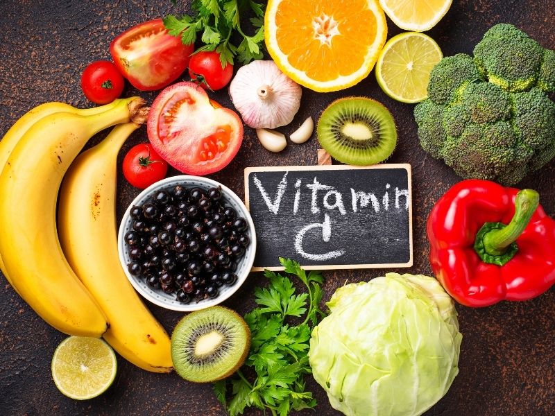 Vitamin C: Làm sáng da, chống lão hóa và giúp vết thương mau lành. Bạn có thể tìm thấy vitamin C trong các loại quả chua như cam, dâu tây, kiwi, và ớt chuông.
