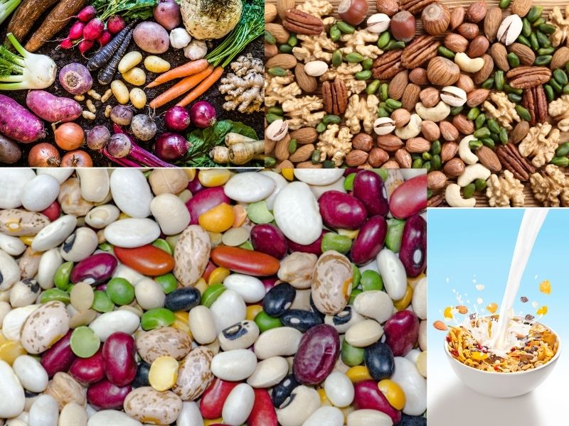 Ưu tiên thực phẩm GI thấp: Ngũ cốc nguyên hạt, rau củ và các loại đậu giúp ổn định mức đường huyết tốt hơn các loại thức ăn nhanh.