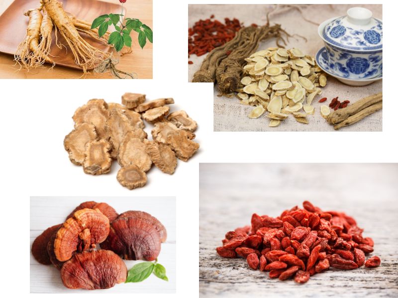 Nhân sâm: Giúp tăng cường sức khỏe, bồi bổ khí huyết.