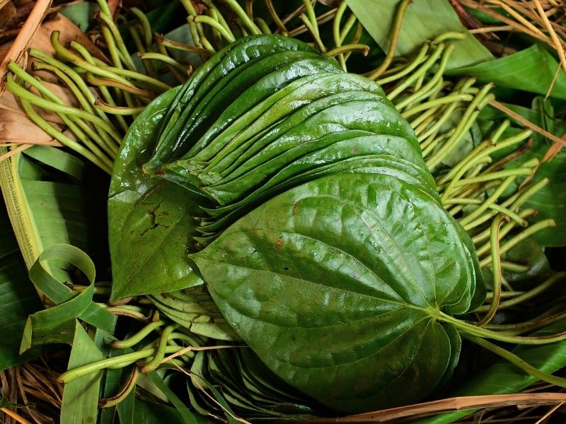 - Rửa sạch lá trầu không.