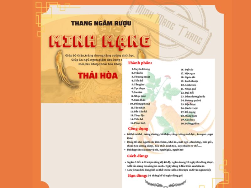 Tất tật về Minh Mạng Thang: Nguồn Gốc, Thành Phần, Công Dụng và Cách Ngâm