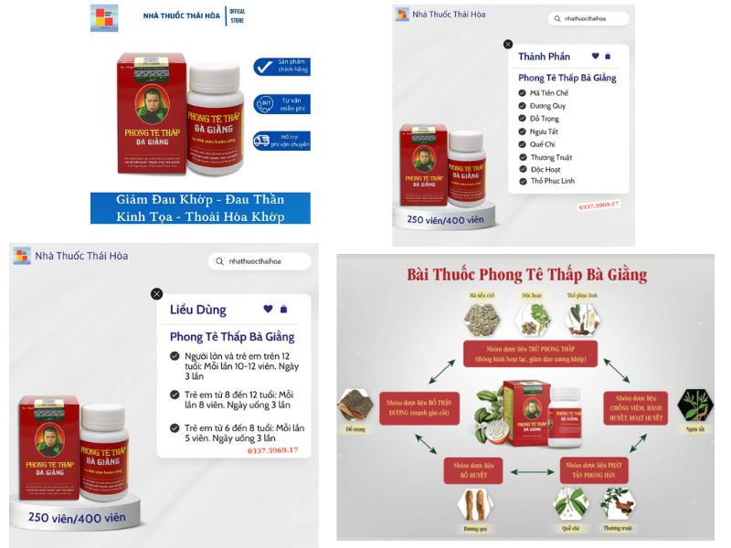 Phong Tê Thấp Bà Giằng là sản phẩm được bào chế từ bài thuốc gia truyền của dòng họ Nguyễn Thị Giằng, nổi tiếng với kinh nghiệm chữa bệnh xương khớp hơn 100 năm. Sản phẩm chuyên trị các bệnh viêm khớp, viêm đa khớp dạng thấp, thoái hóa đốt sống, đau thần kinh tọa, đau nhức xương khớp...